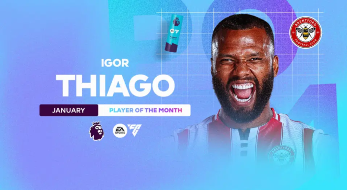 Igor Thiago, a striker for Brentford, became the first Brazilian to win the EA SPORTS Player of the Month award twice in January, setting a Premier League record.